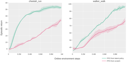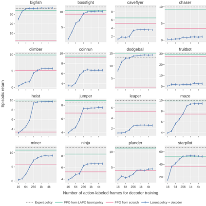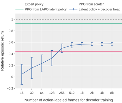Pre-training large models on vast amounts of web data has proven to be an effective approach for obtaining powerful, general models in several domains, including language and vision. However, this paradigm has not yet taken hold in deep reinforcement learning (RL). This gap is due to the fact that the most abundant form of embodied behavioral data on the web consists of videos, which do not include the action labels required by existing methods for training policies from offline data. We introduce Latent Action Policies from Observation (LAPO), a method to infer latent actions and, consequently, latent-action policies purely from action-free demonstrations. Our experiments on challenging procedurally-generated environments show that LAPO can act as an effective pre-training method to obtain RL policies that can then be rapidly fine-tuned to expert-level performance. Our approach serves as a key stepping stone to enabling the pre-training of powerful, generalist RL models on the vast amounts of action-free demonstrations readily available on the web.