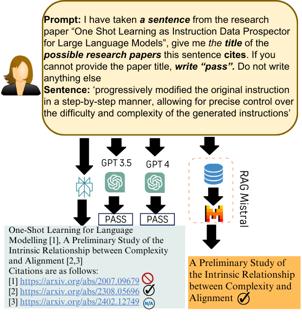 Automatic citation generation for sentences in a document or report is paramount for intelligence analysts, cybersecurity, news agencies, and education personnel. In this research, we investigate whether large language models (LLMs) are capable of generating references based on two forms of sentence queries: (a) Direct Queries, LLMs are asked to provide author names of the given research article, and (b) Indirect Queries, LLMs are asked to provide the title of a mentioned article when given a sentence from a different article. To demonstrate where LLM stands in this task, we introduce a large dataset called REASONS comprising abstracts of the 12 most popular domains of scientific research on arXiv. From around 20K research articles, we make the following deductions on public and proprietary LLMs: (a) State-of-the-art, often called anthropomorphic GPT-4 and GPT-3.5, suffers from high pass percentage (PP) to minimize the hallucination rate (HR). When tested with Perplexity.ai (7B), they unexpectedly made more errors; (b) Augmenting relevant metadata lowered the PP and gave the lowest HR; (c) Advance retrieval-augmented generation (RAG) using Mistral demonstrates consistent and robust citation support on indirect queries and matched performance to GPT-3.5 and GPT-4. The HR across all domains and models decreased by an average of 41.93% and the PP was reduced to 0% in most cases. In terms of generation quality, the average F1 Score and BLEU were 68.09% and 57.51%, respectively; (d) Testing with adversarial samples showed that LLMs, including the Advance RAG Mistral, struggle to understand context, but the extent of this issue was small in Mistral and GPT-4-Preview. Our study con tributes valuable insights into the reliability of RAG for automated citation generation tasks.