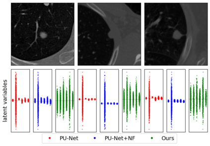 Data uncertainties, such as sensor noise, occlusions or limitations in the acquisition method can introduce irreducible ambiguities in images, which result in varying, yet plausible, semantic hypotheses. In Machine Learning, this ambiguity is commonly referred to as aleatoric uncertainty. In image segmentation, latent density models can be utilized to address this problem. The most popular approach is the Probabilistic U-Net (PU-Net), which uses latent Normal densities to optimize the conditional data log-likelihood Evidence Lower Bound. In this work, we demonstrate that the PU-Net latent space is severely sparse and heavily under-utilized. To address this, we introduce mutual information maximization and entropy-regularized Sinkhorn Divergence in the latent space to promote homogeneity across all latent dimensions, effectively improving gradient-descent updates and latent space informativeness. Our results show that by applying this on public datasets of various clinical segmentation problems, our proposed methodology receives up to 11% performance gains compared against preceding latent variable models for probabilistic segmentation on the Hungarian-Matched Intersection over Union. The results indicate that encouraging a homogeneous latent space significantly improves latent density modeling for medical image segmentation.