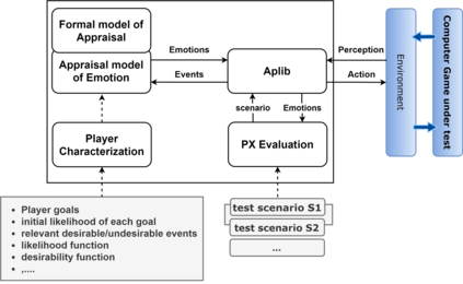 翻译:玩家体验( PX) 评估已经成为游戏行业感兴趣的领域。 已经引入了几种手动 PX 技术来帮助开发者理解和评估玩家在计算机游戏中的经验。 但是,仍然需要解决玩家体验的自动测试。 一个自动玩家体验测试框架将允许设计者在早期开发阶段评估PX要求,而无需参与人类玩家参与。 在本文中,我们建议一种基于事件情绪的正式模式来自动玩家体验测试方法。 特别是, 我们讨论一个基于事件的过渡系统, 用Ortony、Clore、 & Collins(OCC) 的情感理论来将相关的情感正规化。 该模型的工作原型在Aplib(战术代理编程库)的顶部上整合,以创建智能的 PX 测试剂, 能够在3D 游戏案例研究中评估情绪。 其结果被用图形显示为热图。 测试代理的情感直观化最终将有助于游戏设计者创造在玩家中产生一定经验的内容。