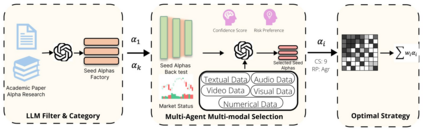 Despite significant progress in deep learning for financial trading, existing models often face instability and high uncertainty, hindering their practical application. Leveraging advancements in Large Language Models (LLMs) and multi-agent architectures, we propose a novel framework for quantitative stock investment in portfolio management and alpha mining. Our framework addresses these issues by integrating LLMs to generate diversified alphas and employing a multi-agent approach to dynamically evaluate market conditions. This paper proposes a framework where large language models (LLMs) mine alpha factors from multimodal financial data, ensuring a comprehensive understanding of market dynamics. The first module extracts predictive signals by integrating numerical data, research papers, and visual charts. The second module uses ensemble learning to construct a diverse pool of trading agents with varying risk preferences, enhancing strategy performance through a broader market analysis. In the third module, a dynamic weight-gating mechanism selects and assigns weights to the most relevant agents based on real-time market conditions, enabling the creation of an adaptive and context-aware composite alpha formula. Extensive experiments on the Chinese stock markets demonstrate that this framework significantly outperforms state-of-the-art baselines across multiple financial metrics. The results underscore the efficacy of combining LLM-generated alphas with a multi-agent architecture to achieve superior trading performance and stability. This work highlights the potential of AI-driven approaches in enhancing quantitative investment strategies and sets a new benchmark for integrating advanced machine learning techniques in financial trading can also be applied on diverse markets.