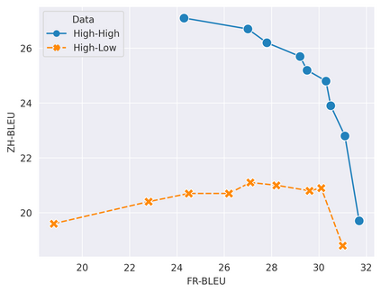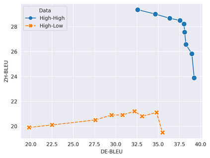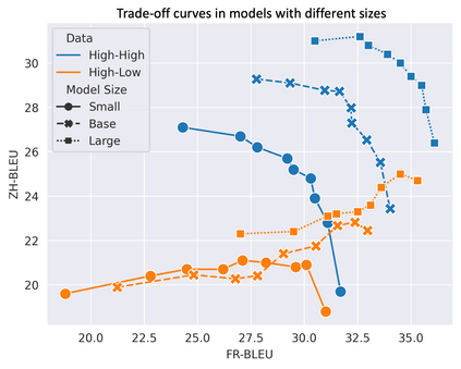 翻译:在这项工作中,我们研究了给定方向的广义性能如何随其采样比例在多语言神经机器翻译(MNMT)中改变。通过训练超过200个具有各种模型大小,方向和任务总数的多语言模型,我们发现当训练语料库中存在数据不平衡时,标量化会导致多任务折衷前沿偏离传统的帕累托前沿。也就是说,对于某些翻译方向的性能不随其在多任务优化目标中的权重增加而提高,这对于提高所有方向的整体性能提出了更大的挑战。基于我们的观察,我们提出了双幂律以预测MNMT中的独特性能折衷前沿,该前沿在各种语言,数据充足性和任务数量方面都具有鲁棒性。最后,我们将MNMT中的采样比例选择建模为基于双幂律的优化问题,在我们的实验中使用的训练预算的一半以内,其性能优于温度搜索和梯度操作方法。
