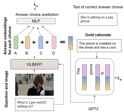 翻译:尽管在视觉问答(VQA)方面最近有所进展,但确定有多少成功可以归功于合理的推理和理解能力仍然是一项挑战。 我们试图通过提出一个新的逻辑一代任务来调查这一问题。 从表面看,我们使用一个具有基因学原理的VQA模型来预测答案。 我们使用视觉常识Resoning(VCR)任务中的数据,因为它包含地面曲线,连同视觉问题和投影。我们首先通过利用最新的断层模型(GPT-2)来从预选重量中产生理由,对VCRM-els(VLBERT)中常见的不发育状态进行调查。接下来,我们寻求将VLBERT-2(VPT-2)与GPT-2(VPT-2)联合起来,其双重任务是预测VQA中的一台天文台,并产生理由。我们展示了这种在VQA中进行定量和定性评估的培训模型。