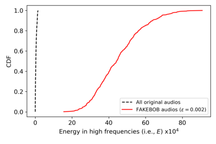 翻译:发言人核查系统被广泛用于智能手机和互联网设备中,以识别合法用户;最近的工作显示,对抗性攻击,如FakeBOB,能够有效地对付发言者核查系统;本文件的目的是设计一个探测器,能够将原始音频与受对抗性攻击污染的音频区分开来;具体地说,我们设计的探测器,称为MEH-FEST,从音频的短时间四轮变换中计算出高频最低能量,并将其作为探测度量;通过分析和实验,我们表明,我们提议的探测器易于执行,能够快速处理输入音频,能够有效地确定一个音频是否被FakeBOB攻击腐蚀;实验结果表明,探测器非常有效:几乎没有假正反率和假负速,用以探测高斯州混合模型(GMM)和i-Voctor喇叭检查系统中的FakeBOB攻击;此外,讨论和研究针对我们提议的探测器及其反措施的适应性对抗性攻击,显示攻击者与捍卫者之间的游戏。