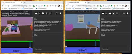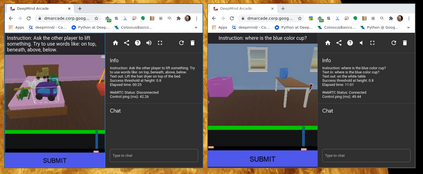 翻译:科幻小说的一个共同愿景是,机器人有一天会占据我们的物理空间,像我们一样感知世界,像我们一样感受世界,帮助我们的体力劳动,并通过自然语言与我们交流。在这里,我们研究如何设计人造代理人,利用简化虚拟环境与人类自然互动。然而,这种环境结合了人工智能研究的一些中心挑战:复杂的视觉认知和定向物理控制,有根有据的语言理解和制作,以及多媒介的社会互动。为了建立能够与人类进行强有力互动的代理人,我们最好在他们与人类互动的同时对他们进行培训。然而,目前这是不切实际的。因此,我们把人类的作用与另一个学到的代理人相近,并使用反强化学习的想法来缩小人与代理人互动行为之间的差距。这种环境的严格评估是一个巨大的挑战,我们开发了各种各样的行为测试,包括由那些观看代理人录像或与他们直接互动的人进行的评估。这些评估令人信服地表明,在他们与人类打交道的过程中,除了通过监督单项行动学习之外,我们还不切实际的代理人的作用之外,还利用从反向别人学习,利用反向强化学习来的想法,利用反向学习来的想法来思考的想法来思考,我们的人造型的技巧,从而把人造能的能力与行为判断力的判断力去,从而把人类的判断结果变成一种新的工具的推模。最后, 使人类的代理人的能力和行为上的推模力的推模。 使人类的推模力的推模力成为新的的推模。在人类的推模成为新的的推模。