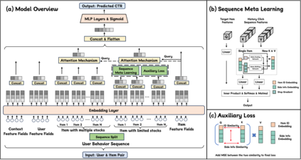 Compared to business-to-consumer (B2C) e-commerce systems, consumer-to-consumer (C2C) e-commerce platforms usually encounter the limited-stock problem, that is, a product can only be sold one time in a C2C system. This poses several unique challenges for click-through rate (CTR) prediction. Due to limited user interactions for each product (i.e. item), the corresponding item embedding in the CTR model may not easily converge. This makes the conventional sequence modeling based approaches cannot effectively utilize user history information since historical user behaviors contain a mixture of items with different volume of stocks. Particularly, the attention mechanism in a sequence model tends to assign higher score to products with more accumulated user interactions, making limited-stock products being ignored and contribute less to the final output. To this end, we propose the Meta-Split Network (MSNet) to split user history sequence regarding to the volume of stock for each product, and adopt differentiated modeling approaches for different sequences. As for the limited-stock products, a meta-learning approach is applied to address the problem of inconvergence, which is achieved by designing meta scaling and shifting networks with ID and side information. In addition, traditional approach can hardly update item embedding once the product is consumed. Thereby, we propose an auxiliary loss that makes the parameters updatable even when the product is no longer in distribution. To the best of our knowledge, this is the first solution addressing the recommendation of limited-stock product. Experimental results on the production dataset and online A/B testing demonstrate the effectiveness of our proposed method.