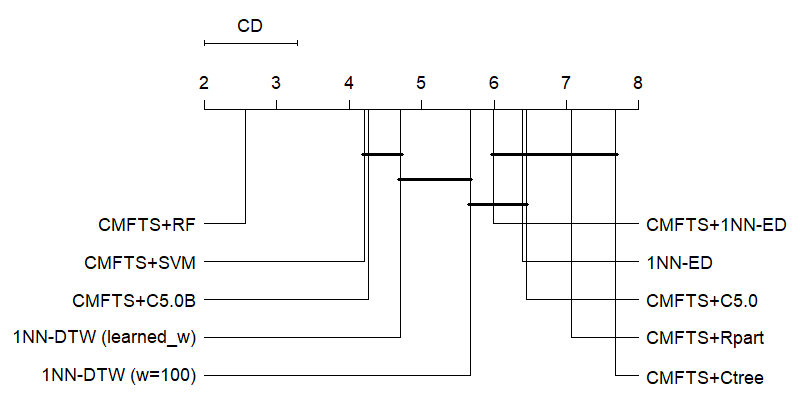 翻译:由于世界逐渐数字化,时间序列的分类是不同学科中一个日益严重的问题。目前,时间序列中最先进的分类方式主要是由基于变换的组合的等级化投票组。这种算法由五大模块中分布的不同领域的若干分类师组成。根据内部评估程序衡量的每个模块获得的结果的组合使得这一算法能够在最新技术中取得最佳结果。一个拥有动态时间扭曲的近邻仍然在任何时间序列分类问题中作为基础分类师,因为其简单性和良好结果。尽管它们的表现不同,它们具有共同的弱点,即它们不能解释。在时间序列分类方面,准确性和可解释性之间存在着一种权衡。在这项工作中,我们提出了一系列特点,能够提取关于时间序列结构的信息,以面对时间序列分类问题。这些特点的使用使得在时间序列问题中使用传统的分类算法。我们提案的实验结果显示,与第二和第三最佳的可变式模型相比,在统计上没有显著的差异。除了提出具有竞争力的结果外,我们提出的基于可变式解释结果的精确性之外,还能够提出基于提议的精确性。