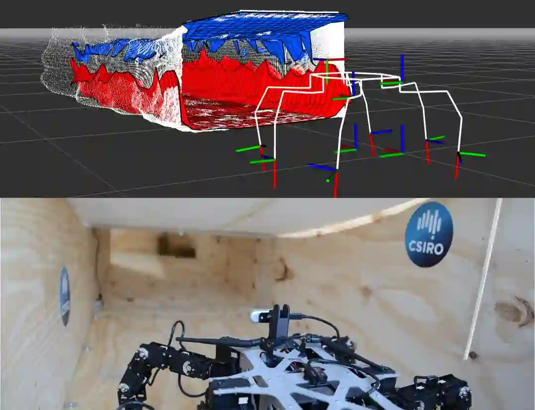 翻译:脚步机器人有能力调整行走姿势以导航封闭的空间, 因为他们的自由度较高。 但是, 这一点在大多数常见的多脚平台上都没有被利用。 本文展示了机器人模型的变形捆绑盒式抽象, 连同配套的绘图和规划策略, 使脚步机器人能够自动改变身体形状以导航封闭的空间。 绘制地图时使用了机器人携带的远程传感器生成的以机器人为中心的多升地图。 路径规划基于轨迹优化算法 CHOMP, 该算法在避免障碍的同时创造滑动轨迹。 提议的方法在模拟中测试, 并在六粒机器人 Weaver 上实施, 通常行走时为33\, cm 高和 82\ 厘米宽。 我们用70厘米宽的宽空隙和超过22厘米的高屏障, 在人工测试空间和现实环境中, 包括地下采矿隧道, 我们展示了在25厘米以下的悬崖下航行。