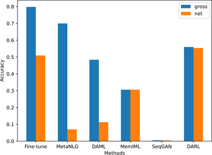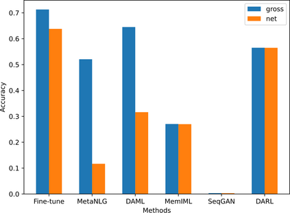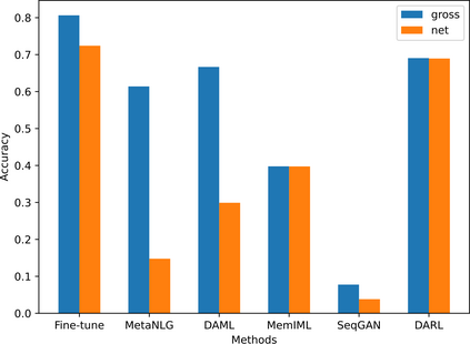 翻译:控制基因化模型以适应具有有限样本的新领域是一项困难的挑战,而且日益受到注意。最近,基于元学习的方法为几发域适应工作展现出有希望的结果。然而,基于元学习的方法通常存在过大的问题,造成生成文本缺乏多样性。为了避免这一问题,本研究报告提出了一个基于强化学习的新框架。在这个框架内,为了增加RL的样本利用并减少其样本要求,将最大的可能性估计学习纳入RL进程。当仅有少量的域内样本可用时,五个目标领域的实验结果在两个微小的组合中显示,这一框架的运行优于基线。