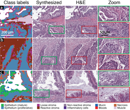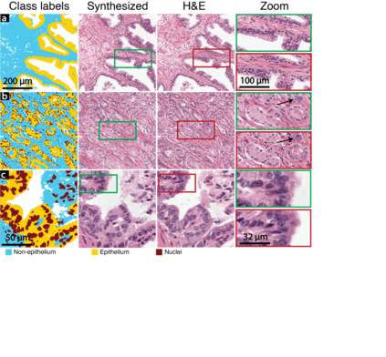 翻译:对从FFPE组织区块中制作的玻璃幻灯片上薄割的沾染组织进行光学微观显微镜检查,这是组织诊断的黄金标准。此外,任何病理学家的诊断能力和专门知识都取决于他们在常见和稀有变异形态方面的直接经验。最近,采用了深层次的学习方法来成功地显示这类任务的高度准确性。然而,在专家一级获得附加说明的图像是一项昂贵和耗时的工作,人工合成的生理图象会大有助益。在这里,我们提出一种方法,不仅产生能复制常见疾病的诊断性细胞图象,而且还提供用户生成新的和稀有形态特征的能力。我们的方法涉及开发一种基因化对抗网络模型,以综合受阶级标签制约的病理图象。我们研究了这一框架在合成现实的先质和结肠图象方面的能力,并评估了这些图象在提高机器学习方法的复杂诊断能力方面的实用性,以及由经验丰富的解算性病理学家小组使用这些图象图象图象图象,同时提供一种用户能力生成新的和罕见形态图象的能力。我们通过一个类似的组织图象分析框架进行了类似的模型的合成数据分析,我们进行一个比较的比较的模型数据分析,最后的模型,我们进行了一个比较的研判了一种比较的模型,我们能的模型,我们进行了一种比较的研判的研判的研判的研判的研判的研判的比。