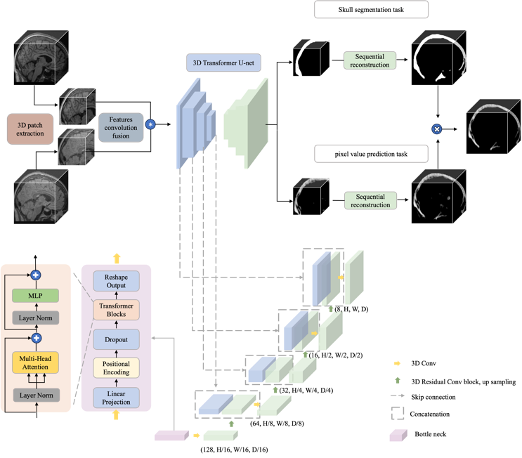 Image segmentation, real-value prediction, and cross-modal translation are critical challenges in medical imaging. In this study, we propose a versatile multi-task neural network framework, based on an enhanced Transformer U-Net architecture, capable of simultaneously, selectively, and adaptively addressing these medical image tasks. Validation is performed on a public repository of human brain MR and CT images. We decompose the traditional problem of synthesizing CT images into distinct subtasks, which include skull segmentation, Hounsfield unit (HU) value prediction, and image sequential reconstruction. To enhance the framework's versatility in handling multi-modal data, we expand the model with multiple image channels. Comparisons between synthesized CT images derived from T1-weighted and T2-Flair images were conducted, evaluating the model's capability to integrate multi-modal information from both morphological and pixel value perspectives.