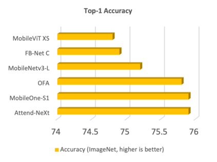 翻译:随着人们越来越多地采用深入的学习方法来进行在设备上安装的微粒ML应用,对优化边缘优化的高效神经网络主干网的需求不断增加。最近,引入关注冷凝器网络导致低脚印、高效率和自控神经网络,从而在准确性和速度之间达到强烈的平衡。在这项研究中,我们引入了一种更快的注意冷凝器设计,称为双凝聚式冷凝器,允许高凝固特性嵌入。我们进一步采用了机械驱动的设计探索战略,根据提高效率和稳健性以形成骨干宏观-微型结构构建的最佳做法,在设计上设置了限制。由此形成的骨干(我们命名为NeXt)在嵌入的ARM进程上实现了显著的更低脚印、高效率的神经网络网络网络网络网络。 与其他最先进的节能骨架相比,我们引入了一个更快的注意冷凝压缩器设计,其精度和速度比Mmovey1-S1型设计速度快10x要快。我们还采用了一种机器驱动的设计探索型设计,其型规模小(比移动Net3-L结构更小,比移动网络结构更小,以更高,以更高的精度更高精度更高精度,以高的S-L,以高速度展示速度展示速度,在高级的S-V1-1号的S-V1号最高的图像结构,以高速度展示了速度,以高速度,在高级的自我结构结构显示,以更高的速度展示速度展示,在高。