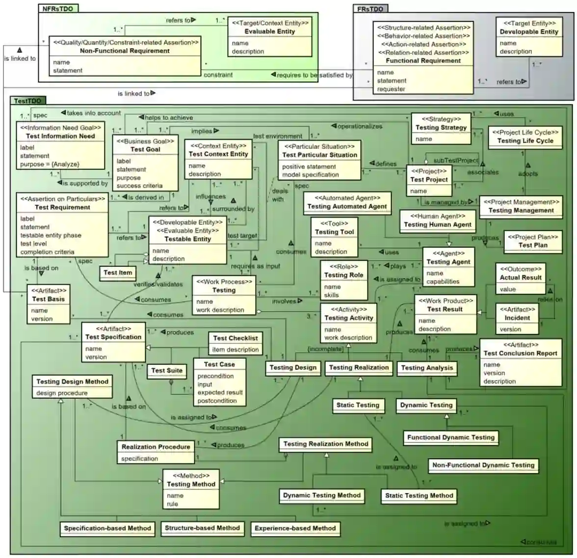 翻译:本预印指定和定义了TestTDO(软件测试顶部 Ontology) v1.2 的所有术语、属性、关系和轴心,这是其前身TestTDO v1.1.1.TestTDO的略微更新版本。TestTDO是四层肿瘤结构(FCD-OntoArch,Core,和Domain OntoArch)背景下建立的一个顶层肿瘤学。这是一个四层的本体结构,考虑基础、核心、Domain和试金层面。反过来,域级分为两个子级,即:顶部和低部Ontological级别。同一层次的本体可以相互关联,只有TingFO的本体结构除外。此外,较低层次的本体系术语和关系可以由本体、核心、核心、核心、核心和更高层次的关系加以丰富。一些TestTDO的术语和关系主要来自SDTOTDO的Creatimical 和Centritutional (Cal) Ostal Prodelisalments) 和Miscialmental CO 。