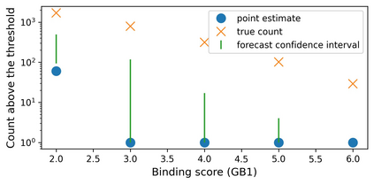 翻译:设计和优化具有特定功能的生物序列的能力将释放技术和医疗保健的巨大价值。近年来,机器学习指导序列设计已经大大推进了这一目标,尽管验证实验室或诊所的设计序列需要许多个月和大量劳动。因此,在将资源投入实验之前,评估设计数据集包含所需质量序列的可能性(通常不在我们培训数据标签分发范围之内)是有价值的。 预测是许多领域的一个突出概念,可以延迟反馈(例如选举),但在序列设计方面没有使用或研究过。 我们在这里提出了一个方法,用以指导决策,根据模型提供的估计数预测高通量图书馆的性能(例如包含10 5美元的独特变量),为图书馆的标签分配提供一个海报。我们显示,我们的方法超越了天真地使用模型分数来估计图书馆业绩的基线,而图书馆业绩是目前用于此目的的唯一工具。