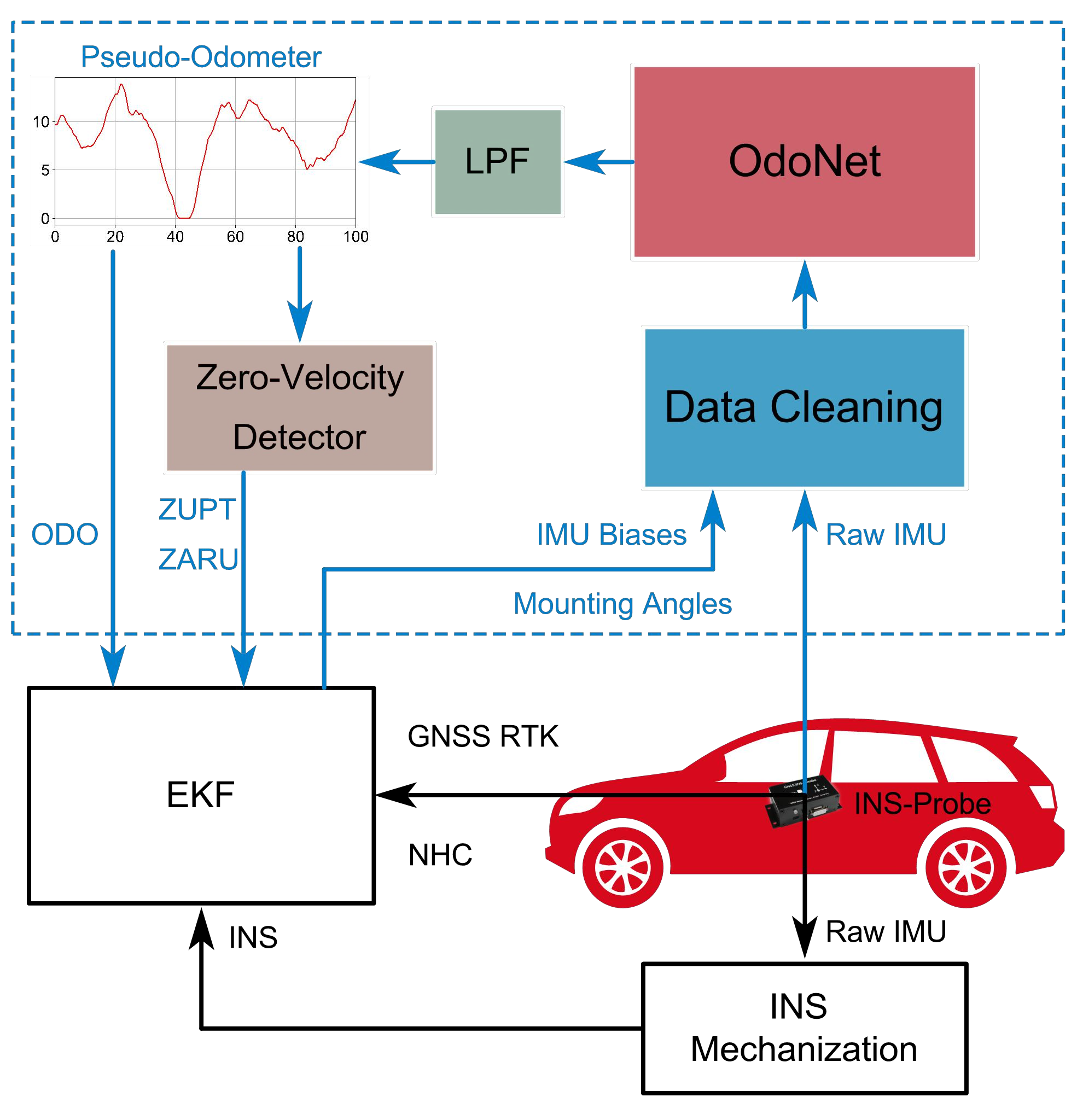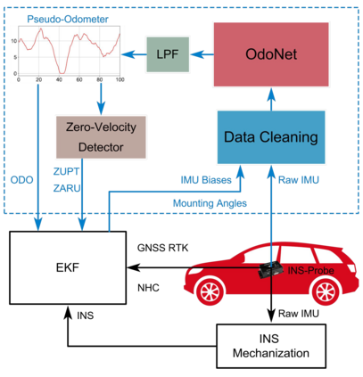 翻译:已经证明,测量仪大大提高了全球导航卫星系统/惯性导航系统(GNSS/INS)综合车辆导航系统(GNSS/INS)在受全球导航卫星系统挑战的环境中的准确性。然而,在很多应用中,特别是市场后装置中,超强测量仪是无法进入的。要应用远速协助,而没有硬件轮式气压计,我们提议OdoNet,这是一个单维单维的单维飞动神经网络(CNN)的伪温度模型学习,可以取代轮式气压计。已经进行了专门实验,以核实OdoNet的可行性和稳健性。结果显示,IMU的个性、车辆负荷和道路状况对OdoNet的稳健性和精确性影响不大,而IMU的偏差和不断上升的角可能显著破坏OdoNet。因此,数据清理程序可以有效减轻IMU偏差和升升角度的影响。与仅使用非轨道的轨道定位来改进OdodoNet的不精确性环境相比,在IMFILMLM的定位上,而采用不精确度则采用IMIGML的精确度。