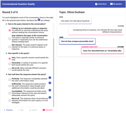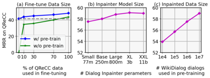 翻译:许多重要问题(例如“如何吃更健康? ” ) 需要对话才能建立背景和深入探讨。然而,对话问答(ConvQA)系统长期以来一直受到难以收集的培训数据(ConvQA)系统的干扰,因为收集的训练数据非常少。为了解决这一问题,我们提出了合成生成多样化和高质量对话数据的新技术:对话图画。我们的方法采纳了任何文件的文本,并将其转换成作者和想象中的读者之间的双人对话:我们把文章中的句子当作作者的发音处理,然后用对话来预测想象中的读者在作者的每个发音中要求或说的内容。我们通过对维基百科和网络的段落应用这一方法,产生了维基-迪亚洛格和WebDialog,两套数据集共1 900万个不同的信息查询对话,比现有的最大ConvQA数据集大1000x。此外,人类计算员们判断WikiDialog的答案是否足够和谈话性,好于现有的手动收集的40个相对数据库。我们用CARQ的进度前的数据检索系统。