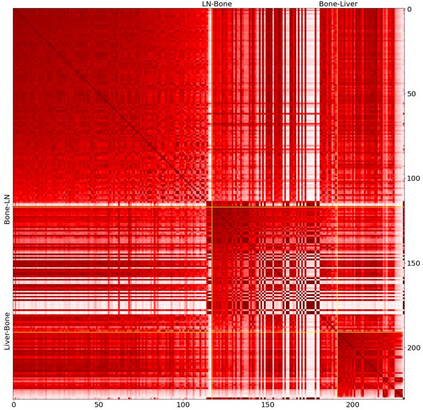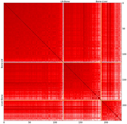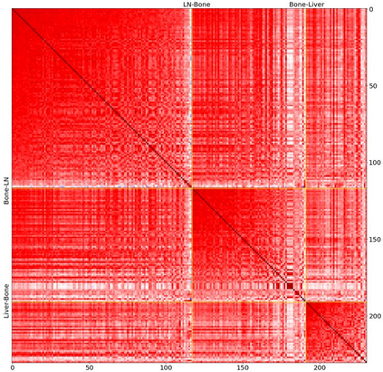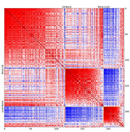 翻译:前列腺癌是男性常见的一种癌症。在前列腺癌的晚期阶段,肿瘤可能转移到身体的其他组织,这是致命的。在这个论文中,我们使用数据科学,机器学习和拓扑网络分析方法对不同转移部位的前列腺癌肿瘤进行了遗传学分析。我们提出了一个通用的流程来预处理基因表达数据集并使用分析方法预过滤显著基因。然后,我们使用机器学习模型进一步筛选重要基因和二次肿瘤分类。最后,我们对来自不同前列腺癌转移部位的样本进行了基因共表达网络分析和社区检测。在这个工作中,我们选取了14,379个基因中的13个作为最具代表性的前列腺癌基因,交叉验证下获得了约92%的准确率。此外,我们提供了基因共表达网络中基因的共表达模式的初步见解。该项目代码可在https://github.com/zcablii/Master_cancer_project上找到。