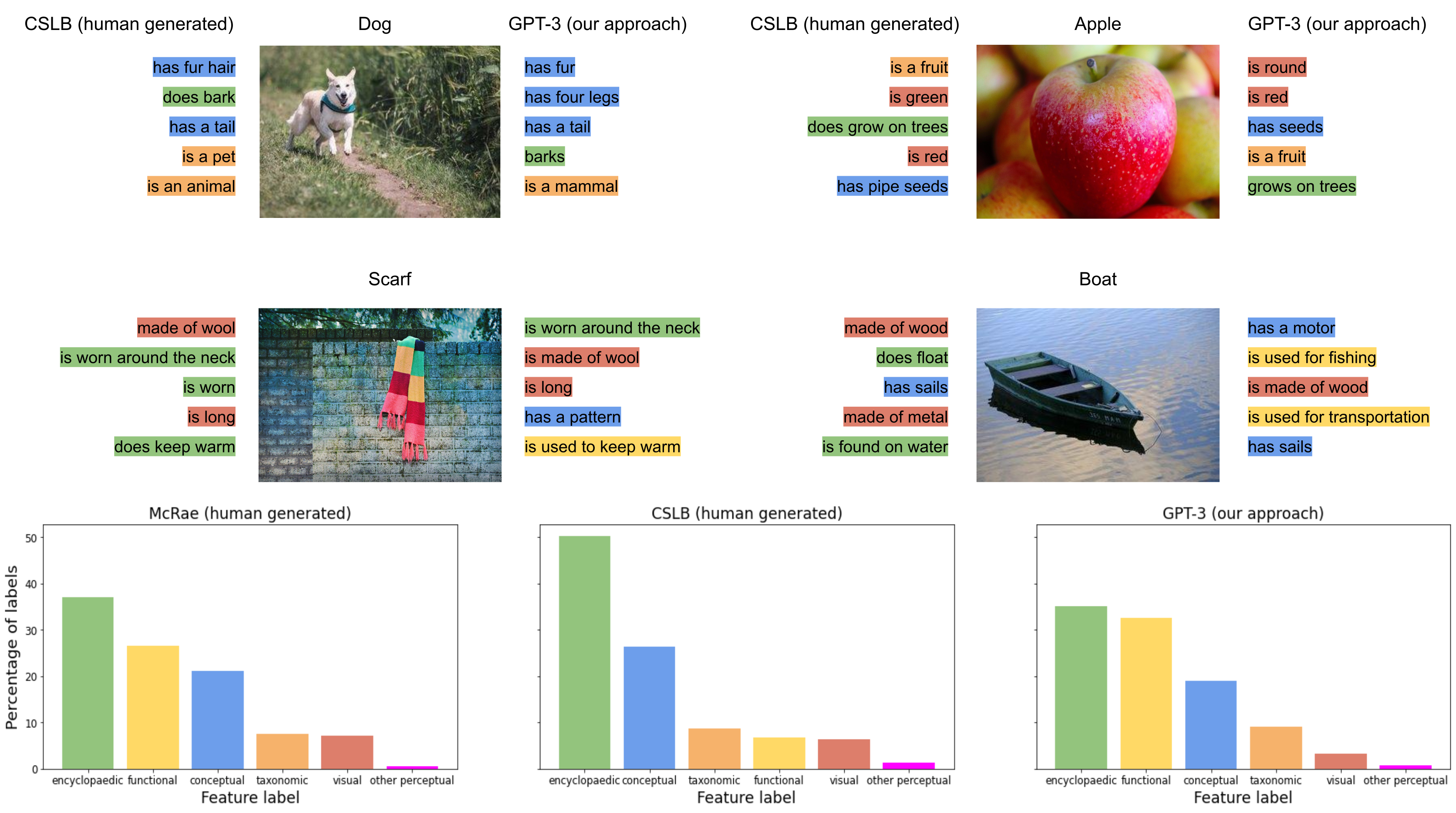 翻译:语义特征在调查我们概念表述的性质方面一直发挥着核心作用。然而,人类标本器的经验抽样和规范特征所需要的大量时间和努力限制了其使用,将其限制在有限的一组人工整理概念上。鉴于以变压器为基础的语言模型最近出现的有希望的发展动态,我们在这里询问是否有可能使用这些模型自动生成任意物体概念的有意义的属性清单,以及这些模型是否会产生与人类所发现的特征相类似的特征。为此,我们探索了一种GPT-3模型,为1,854个物体生成语义特征,并将自动生成的特征与现有人类特征规范进行比较。GPT-3生成了比人类更多的特征,但在生成的特征类型中却显示出类似的分布分布。生成的特征规范在预测相似性、关联性和类别成员构成方面与人类规范相匹配,而差异分布表明这些预测是由人类和GPT-3的类似差异驱动的。这些结果突出表明,大型语言模型有可能捕捉人类知识的重要方面,并产生可自动生成的特征数据集的新方法,从而极大地扩展了在心理和语言研究中使用语义特征方面的潜力。