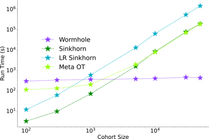 Optimal transport (OT) and the related Wasserstein metric (W) are powerful and ubiquitous tools for comparing distributions. However, computing pairwise Wasserstein distances rapidly becomes intractable as cohort size grows. An attractive alternative would be to find an embedding space in which pairwise Euclidean distances map to OT distances, akin to standard multidimensional scaling (MDS). We present Wasserstein Wormhole, a transformer-based autoencoder that embeds empirical distributions into a latent space wherein Euclidean distances approximate OT distances. Extending MDS theory, we show that our objective function implies a bound on the error incurred when embedding non-Euclidean distances. Empirically, distances between Wormhole embeddings closely match Wasserstein distances, enabling linear time computation of OT distances. Along with an encoder that maps distributions to embeddings, Wasserstein Wormhole includes a decoder that maps embeddings back to distributions, allowing for operations in the embedding space to generalize to OT spaces, such as Wasserstein barycenter estimation and OT interpolation. By lending scalability and interpretability to OT approaches, Wasserstein Wormhole unlocks new avenues for data analysis in the fields of computational geometry and single-cell biology.
