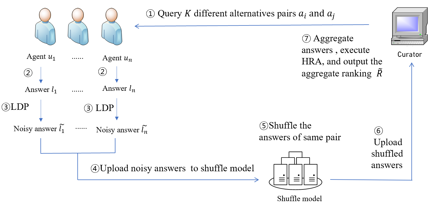 翻译:通常在合作决策中采用分类汇总办法,以协助将多重排名合并成单一代表。为了保护每个人的实际排名,经常使用一些隐私保护战略,例如不同的隐私,但是,这并没有考虑到负责从个人收集所有排名的馆长不可信的情况。本文提出了一个机制,利用分配差异隐私框架来解决上述情况。拟议的机制收集了个人的地方差异私人排名,然后随机随机地对齐了排序,采用打乱模式进一步扩大隐私保护。最后的代表由等级组合产生。该机制在理论上进行了分析,并与现有方法进行了实验性比较,在产出准确性和隐私保护方面显示了竞争性结果。