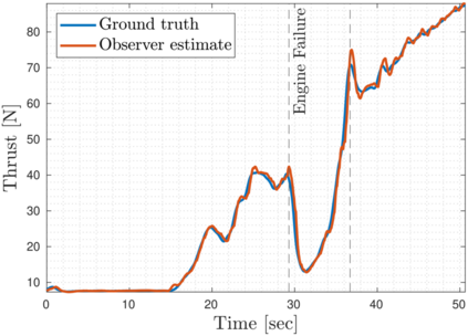 翻译:喷气式垂直起飞和着陆(VTOL)无人机需要精确的推力估计,以确保足够的稳定性幅度和稳健的机动性。小型涡轮吉特机已成为为重型空中无人机提供动力的良好选择。然而,由于这些涡轮吉特机中可用的仪器有限,使用古典技术估计精确的推力并不简单。在本文中,我们提出了一个精确估计iRonCub上小型涡轮吉特机(iRonCub)的在线推力的方法。我们使用灰箱方法,根据从定制发动机试验台获得的数据,用非线性状态空间模型来捕捉涡轮喷气系统动态。然后,该模型用于设计一个延长的卡尔曼过滤器,该过滤器只能从角速度测量中估计涡轮吉特的推力。我们使用了参数估计算法,以确保即使在引擎故障时,EKF也给出平稳和准确的估算值。我们设计的EKF在试验台上验证了测试台,在那里估计的绝对误差是定的峰推力的2%。