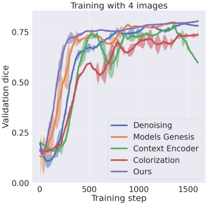 翻译:在许多临床应用中,船舶分离是一项基本任务。尽管受监督的方法已经达到最先进的性能,但获得专家说明是困难的,而且大多限于小样尺寸的二维数据集。相反,未经监督的方法依靠手工制作的特性来探测像管状结构,如船只等。然而,这些方法需要复杂的管道,涉及若干个超参数和设计选择,使程序敏感、特定数据集和不普遍适用。我们建议一种自监督的方法,拥有数量有限的超光度参数,可以跨越各种模式加以普及。我们的方法使用像管状结构的特性,例如连接性、剖面一致性和双形等,在学习算法中引入感化偏差。为了模拟这些特性,我们生成了一个我们称之为流动的矢量场。我们在2D和3D中的各种公共数据集的实验表明,我们的方法比未加标签的数据的有用可转让特性要好,我们从未加标签的自监督数据中学习。与通用的自我监督方法不同的是,所学到的与船舶相关的特性是可转让的特性,这些特性是受监管的方法中的重要数据。