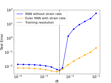 翻译:完全解析具有迅速变化特征的材料的动态需要花费昂贵的精细计算,需要在宏观尺度上进行。同质化理论提供了一种方法,从中得出有效的宏观方程式,通过利用比例分离消除小尺度。精确的同质模型避免了计算成本昂贵的任务,即以细尺度从数字上解决基本平衡法,从而使得平衡法的数值解决办法更容易进行计算。在复杂的环境中,同质化只能隐含地界定构成模型,机器学习可以用来从局部微尺度模拟中明确学习构成模型。在单维的超小型模拟中,该模型的直线性可以进行彻底分析。我们确定,同质构成模型可以被一个能捕捉记忆的经常性神经网络(RNNN)所近似。记忆被压缩在通过学习过程发现并依赖压力历史的一套适当的有限内部变量的演变中。通过模拟来验证这一理论。对于比较复杂的模型的理论提供了指导,例如塑料学的类似模型。