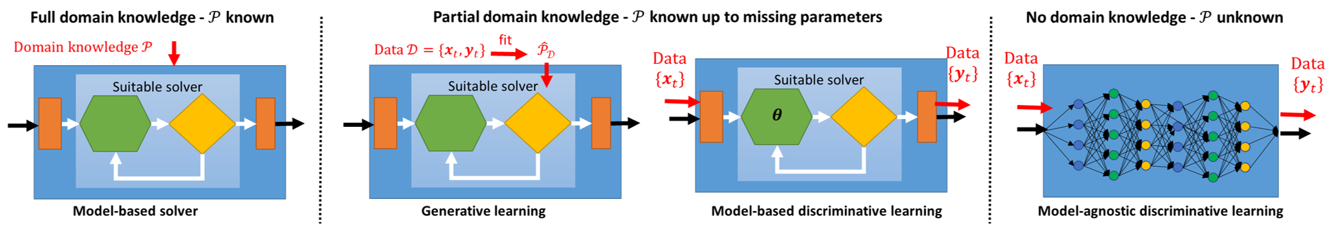 翻译:信号处理中的推断任务往往以提供可靠的统计模型和某些缺失的具体实例参数为特征。一种常规方法使用数据来估计这些缺失参数,然后根据估计模型进行推算。另一种方法是,数据也可以被直接用来学习推论绘图端对端。这些将部分已知的统计模型和数据推论相结合的方法与机器学习文献中使用的基因化和歧视性模型的概念有关,通常在分类学中加以考虑。本演讲说明的目的是引入基因化和歧视性学习的概念,以便推断出一个部分已知的统计模型。虽然机器学习系统往往缺乏传统信号处理方法的可解释性,但我们侧重于一个简单的设置,使人们能够以易于理解和与信号处理读者相关的易懂的方式解释和比较这些方法。特别是,我们以中度误差(MSE)目标,即线性估计为共同设定的高斯语信号估算任务,我们举例说明了方法。