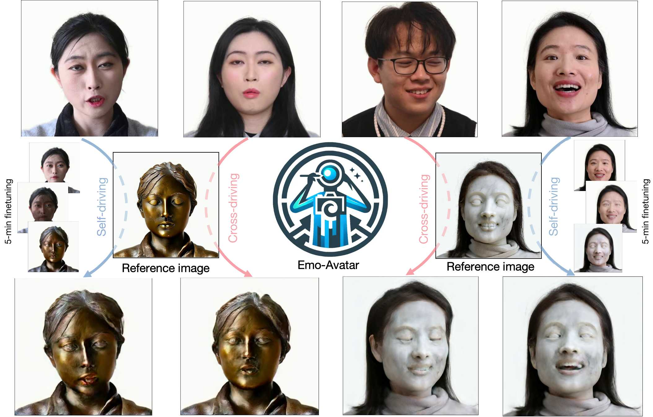 Artistic video portrait generation is a significant and sought-after task in the fields of computer graphics and vision. While various methods have been developed that integrate NeRFs or StyleGANs with instructional editing models for creating and editing drivable portraits, these approaches face several challenges. They often rely heavily on large datasets, require extensive customization processes, and frequently result in reduced image quality. To address the above problems, we propose the Efficient Monotonic Video Style Avatar (Emo-Avatar) through deferred neural rendering that enhances StyleGAN's capacity for producing dynamic, drivable portrait videos. We proposed a two-stage deferred neural rendering pipeline. In the first stage, we utilize few-shot PTI initialization to initialize the StyleGAN generator through several extreme poses sampled from the video to capture the consistent representation of aligned faces from the target portrait. In the second stage, we propose a Laplacian pyramid for high-frequency texture sampling from UV maps deformed by dynamic flow of expression for motion-aware texture prior integration to provide torso features to enhance StyleGAN's ability to generate complete and upper body for portrait video rendering. Emo-Avatar reduces style customization time from hours to merely 5 minutes compared with existing methods. In addition, Emo-Avatar requires only a single reference image for editing and employs region-aware contrastive learning with semantic invariant CLIP guidance, ensuring consistent high-resolution output and identity preservation. Through both quantitative and qualitative assessments, Emo-Avatar demonstrates superior performance over existing methods in terms of training efficiency, rendering quality and editability in self- and cross-reenactment.