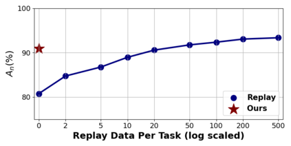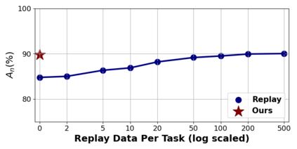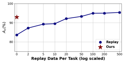 翻译:最近,大规模预训练视觉语言(VL)模型在许多零样例下游任务中展示了非凡的能力,成功地识别出只由简短文本提示定义的对象。然而,也已经表明,VL模型在结构化视觉语言概念(SVLC)推理方面仍然脆弱,例如识别对象属性、状态和对象间关系的能力。这导致推理错误,需要在出现问题的位置上使用私有数据进行纠正,从而自然地导致了数据自由、连续(无任务id)VL学习设置。在这项工作中,我们引入了第一个连续无数据结构化视觉语言概念学习(ConStruct-VL)基准,并表明它对许多现有的无数据CL策略而言是具有挑战性的。因此,我们提出了一种无数据方法,它包括一种新的对抗性伪重演(APR)方法,可以从过去的任务模型中生成对抗性的过去任务提醒。为了有效地使用这种方法,我们还提出了一种连续的参数高效分层LoRA(LaLo)神经结构,允许在训练时无需存储使用所有过去模型的内存成本。我们证明了这种方法的表现优于所有无数据方法,达到了超过7%的水平,甚至匹配了一些经验重演的水平(这对于需要保护数据隐私的应用是禁止的)。我们的代码公开可用:https://github.com/jamessealesmith/ConStruct-VL