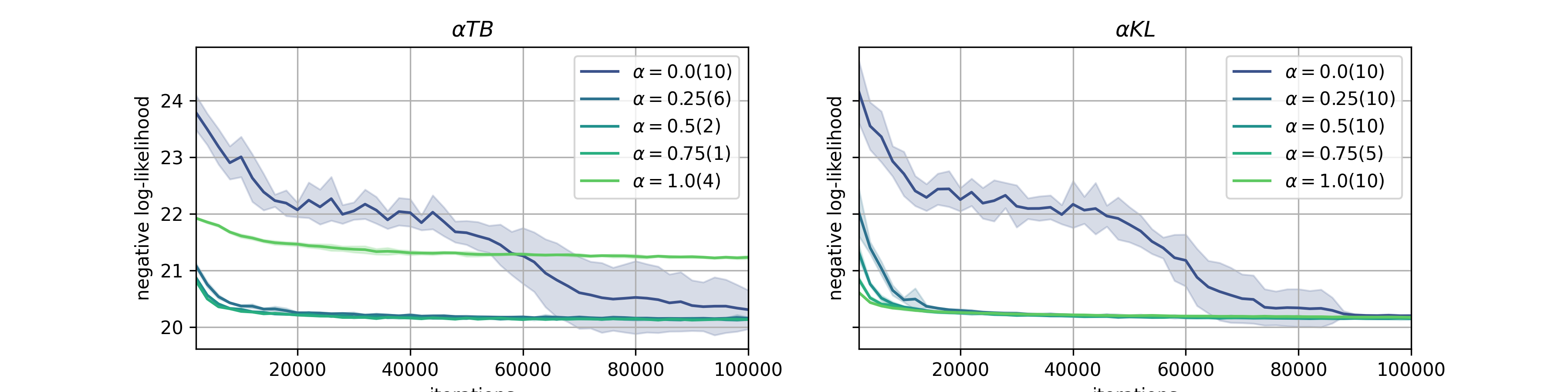 翻译:在这项工作中,我们根据前向和后向分布之间的Kullback-Leibertr(KL)差异来界定GFMs的变式目标。我们表明,GFMs的变式推论相当于在从前向模式取样时尽量减少轨迹平衡目标。我们通过优化逆向和前向KL差异的曲线组合来推广这一方法。这种洞察力表明,变式推论方法可以作为一种手段,用以界定对GFMs进行基因变异流网络培训的更普遍的目标,例如,采用在变式推论中常用的控制变式,以减少轨迹平衡目标的梯度差异。我们通过将逆向和前向KL差异的曲线组合优化来评估我们的调查结果和拟议变异目标的绩效,将之与两个合成任务的目标轨迹平衡目标进行比较。