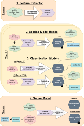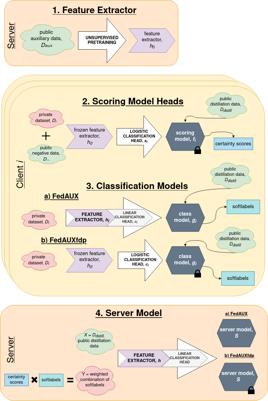 翻译:在非本地数据集中,即客户数据分布不一时,联邦学习会受到影响。应对这一挑战的一个有希望的方法是最近提出的FedAUX方法,即增加联合蒸馏,对即使是高度多样化的客户数据也产生强有力的结果。FedAUX是一种部分(//epsilon,\delta)美元-有区别的私人方法,因为客户的私人数据仅在其参与的培训中的一部分得到保护。这项工作有助于完全差别化的私人修改,称为FedAUXfdp。我们进一步贡献了正规化多金属物流回归对美元-2美元敏感度的上限。在与大型图像数据集深度网络的实验中,具有强烈差异隐私权保障的FedAUXfdp在仅仅一次通信回合中比其他同样私有化的SOTA非客户数据基线要好得多。修改方法的全面私有化导致所有级别数据的高度遗传性降低。