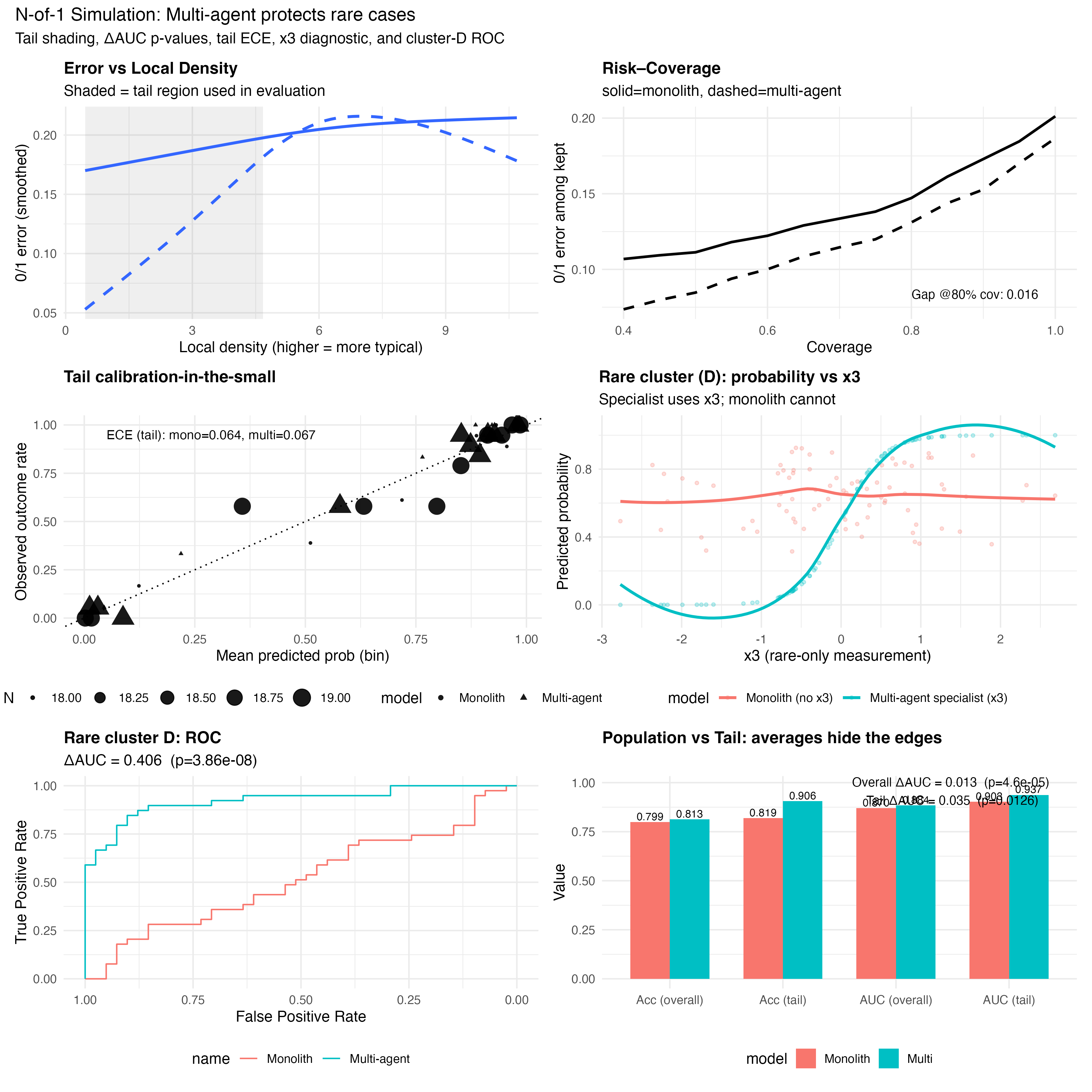 Artificial intelligence in medicine is built to serve the average patient. By minimizing error across large datasets, most systems deliver strong aggregate accuracy yet falter at the margins: patients with rare variants, multimorbidity, or underrepresented demographics. This average patient fallacy erodes both equity and trust. We propose a different design: a multi-agent ecosystem for N-of-1 decision support. In this environment, agents clustered by organ systems, patient populations, and analytic modalities draw on a shared library of models and evidence synthesis tools. Their results converge in a coordination layer that weighs reliability, uncertainty, and data density before presenting the clinician with a decision-support packet: risk estimates bounded by confidence ranges, outlier flags, and linked evidence. Validation shifts from population averages to individual reliability, measured by error in low-density regions, calibration in the small, and risk--coverage trade-offs. Anticipated challenges include computational demands, automation bias, and regulatory fit, addressed through caching strategies, consensus checks, and adaptive trial frameworks. By moving from monolithic models to orchestrated intelligence, this approach seeks to align medical AI with the first principle of medicine: care that is transparent, equitable, and centered on the individual.