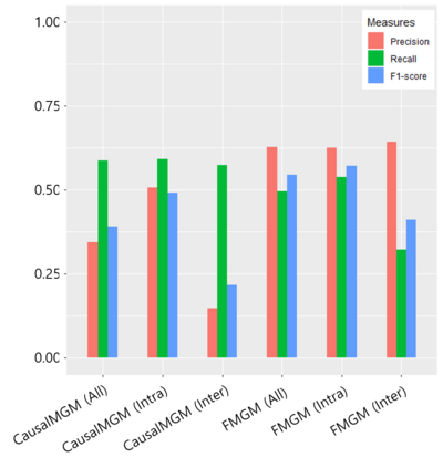 翻译:在本篇文章中,我们提出了一种名为 " 结合混合图形模型(FMGM) " 的新方法,该方法可以推断二分体型苯酚型的网络结构结构。我们假定,不同的显微标记的相互作用与疾病状况有关,并提出了一种基于FMGM的方法,以探测相关的显微标记网络差异。网络的统计模型以双向Markov随机字段模型为基础,并增加了惩罚功能,以尽量减少网络中稀少的影响。快速准显微梯度法(PGM)用于优化目标功能。方法有效性是通过模拟电动法律网络结构的合成数据集来衡量的。我们发现,与先前按顺序推断网络(0.392和0.546)的方法相比,调微显色标记与F1分相比表现优异。 FMGM不仅在确定差异(0.217和0.410)方面表现更好,而且还在确定网络中的稀疏漏效应。拟议方法用于6个月有和没有色谱皮肤的婴儿的多组特征剖面性DNA(AD)来测量方法的有效性。还发现,与氨基质的丰度和与氧化性相关的微生物相关的基因的降解性关系,表明,其与微生物的丰度与氧化有关。