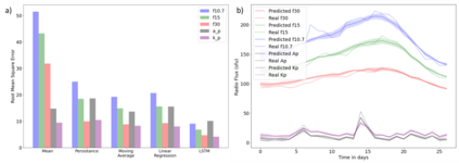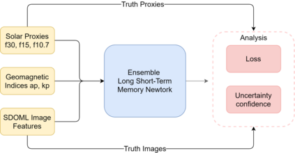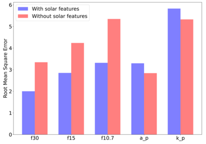 翻译:太阳无线电通量以及地磁指数是太阳活动及其影响的重要指标,耀斑和地磁风暴等极端太阳事件可能对空间环境包括低地球轨道卫星产生消极影响,因此,预测这些空间气象指数对空间活动和科学非常重要。在本研究中,我们提出了一个基于长期短期记忆神经网络的模型,以学习时间序列数据的分布,从而有能力利用时间序列和太阳图像数据同时提供多变27天空间天气指数预报。我们显示,根平均差30-40 ⁇ 改进了太阳图像数据,与仅使用时间序列数据相比,包括时间序列数据,同时使用时间序列数据。诸如持久性和运行中平均预测等简单基线也与经过训练的深神经网络模型进行比较。我们还用模型共振量来量化我们预测中的不确定性。
