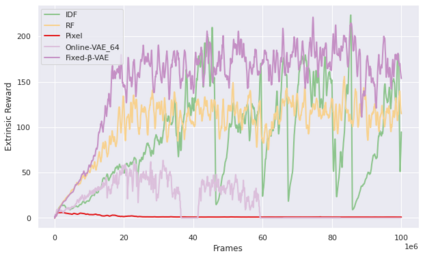 翻译:好奇是增加环境奖赏的一般方法,具有内在奖赏,鼓励勘探,在稀有的奖赏环境中特别有用。由于好奇心是使用下一个状态预测错误计算出来的,因此使用的状态编码类型对性能有很大影响。根据Atari和其他大多数为2D环境的先前结果,随机特征和反动特性通常优于VAEs。然而,不同于VAEs,它们可能无法将足够的信息编码为最佳行为,而最佳行为随着环境变得更加复杂而变得日益重要。在本文中,我们使用稀有的3D物理环境动物-AI奖赏,以展示固定的$\beta$-VAE编码如何能以好奇心有效使用。我们将此与课程学习相结合,以解决先前尚未解析的勘探密集型绕行任务,同时实现22 ⁇ 在培训课程中取得相对于下一个最佳编码的样本效率。我们还证实了关于Atari Brebout的结果,我们习惯编码的随机特征和反动动特性。