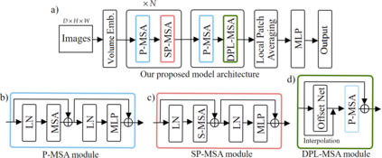 Alzheimer's disease and Frontotemporal dementia are common types of neurodegenerative disorders that present overlapping clinical symptoms, making their differential diagnosis very challenging. Numerous efforts have been done for the diagnosis of each disease but the problem of multi-class differential diagnosis has not been actively explored. In recent years, transformer-based models have demonstrated remarkable success in various computer vision tasks. However, their use in disease diagnostic is uncommon due to the limited amount of 3D medical data given the large size of such models. In this paper, we present a novel 3D transformer-based architecture using a deformable patch location module to improve the differential diagnosis of Alzheimer's disease and Frontotemporal dementia. Moreover, to overcome the problem of data scarcity, we propose an efficient combination of various data augmentation techniques, adapted for training transformer-based models on 3D structural magnetic resonance imaging data. Finally, we propose to combine our transformer-based model with a traditional machine learning model using brain structure volumes to better exploit the available data. Our experiments demonstrate the effectiveness of the proposed approach, showing competitive results compared to state-of-the-art methods. Moreover, the deformable patch locations can be visualized, revealing the most relevant brain regions used to establish the diagnosis of each disease.