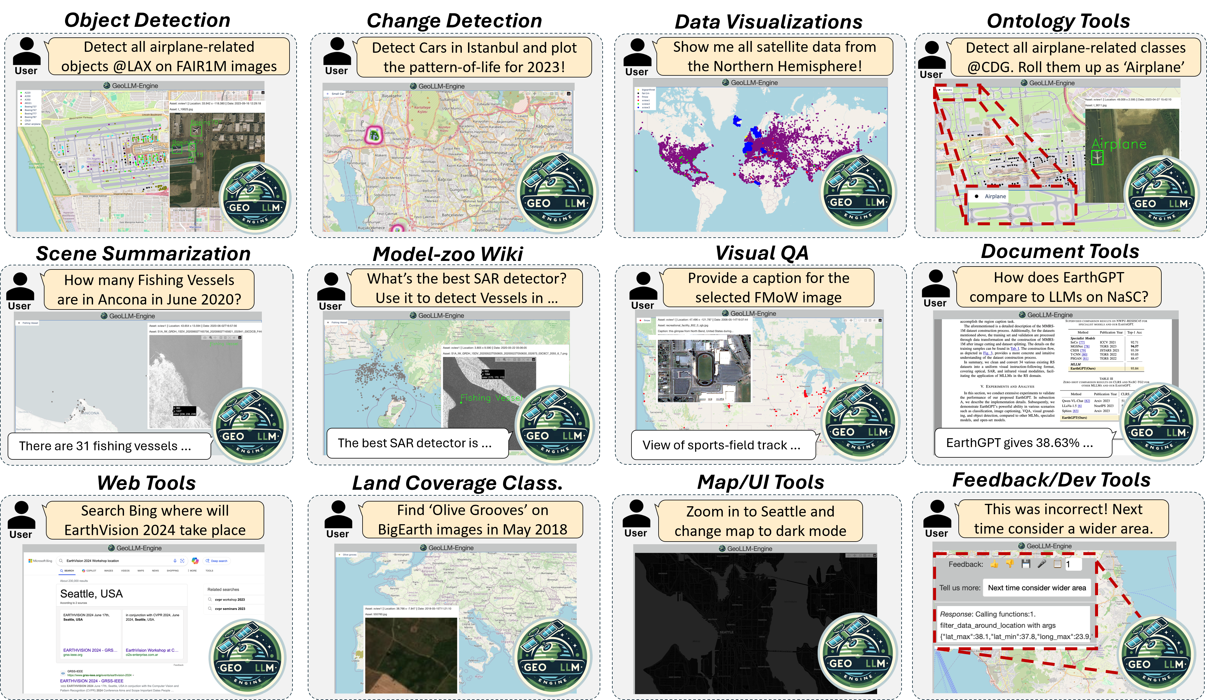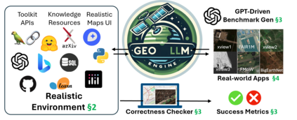 Geospatial Copilots unlock unprecedented potential for performing Earth Observation (EO) applications through natural language instructions. However, existing agents rely on overly simplified single tasks and template-based prompts, creating a disconnect with real-world scenarios. In this work, we present GeoLLM-Engine, an environment for tool-augmented agents with intricate tasks routinely executed by analysts on remote sensing platforms. We enrich our environment with geospatial API tools, dynamic maps/UIs, and external multimodal knowledge bases to properly gauge an agent's proficiency in interpreting realistic high-level natural language commands and its functional correctness in task completions. By alleviating overheads typically associated with human-in-the-loop benchmark curation, we harness our massively parallel engine across 100 GPT-4-Turbo nodes, scaling to over half a million diverse multi-tool tasks and across 1.1 million satellite images. By moving beyond traditional single-task image-caption paradigms, we investigate state-of-the-art agents and prompting techniques against long-horizon prompts.