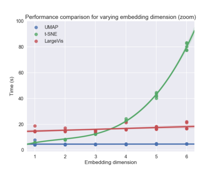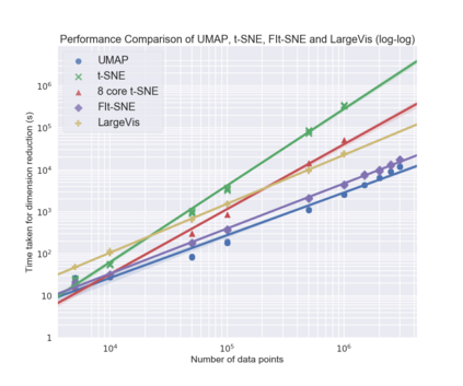 翻译:UMAP( UMAP ( Uniform Manifold Acceration and provision) 是用于降低维度的新颖的多种学习技术。 UMAP是根据基于里曼几何学和代数表层学的理论框架构建的。 其结果是适用于真实世界数据的实用可缩放算法。 UMAP算法在可视化质量方面与 t-SNE具有竞争力,而且可以说保留了更多的全球结构,具有较高的运行时间性能。 此外, UMAP在嵌入维方面没有计算限制,因此它作为机器学习的一般目的的减少维度技术是可行的。