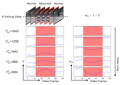 Without human annotations, a typical Unsupervised Video Anomaly Detection (UVAD) method needs to train two models that generate pseudo labels for each other. In previous work, the two models are closely entangled with each other, and it is not known how to upgrade their method without modifying their training framework significantly. Second, previous work usually adopts fixed thresholding to obtain pseudo labels, however the user-specified threshold is not reliable which inevitably introduces errors into the training process. To alleviate these two problems, we propose a novel interleaved framework that alternately trains a One-Class Classification (OCC) model and a Weakly-Supervised (WS) model for UVAD. The OCC or WS models in our method can be easily replaced with other OCC or WS models, which facilitates our method to upgrade with the most recent developments in both fields. For handling the fixed thresholding problem, we break through the conventional cognitive boundary and propose a weighted OCC model that can be trained on both normal and abnormal data. We also propose an adaptive mechanism for automatically finding the optimal threshold for the WS model in a loose to strict manner. Experiments demonstrate that the proposed UVAD method outperforms previous approaches.