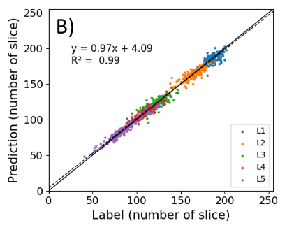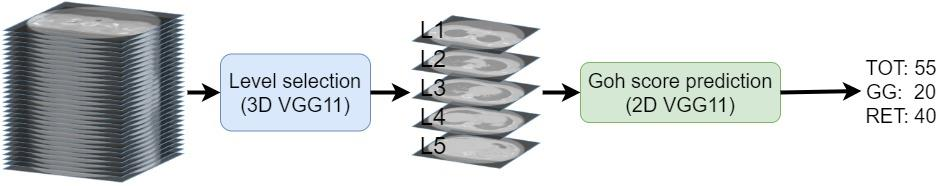 翻译:第二个(2D)网络接收2Dx轴切片,并预测得分。我们使用227 3D CT扫描对第一个网络进行培训和验证,其结果是1135 xial 切片在第二个网络中应用。我们因此提议了一个自动评分框架,由两个连锁的深度后退神经网络组成。第一个(3D)网络旨在预测三维CT扫描中五种解剖式评分水平的硬盘位置。第二个(2D)网络接收由此产生的2Dx轴切片,并预测了分数。我们使用227 3D CT 扫描来培训和验证第一个网络,其结果是1135 xial 切片在第二个网络中应用。两个专家独立获得一组数据,以获得一组内部和观察者之间的差异和所有数据的地面真相。为了缓解第二个网络中培训标签的不平衡,我们引入了取样合成数据的多样性、地面玻璃和再解释模式。四倍交叉校验显示,我们拟议的网络在0.90、1.66和0.49之间平均MAE、0.48和0.48 和0.4的地面预测中,分别完成了对0.46和0.48的计算。
