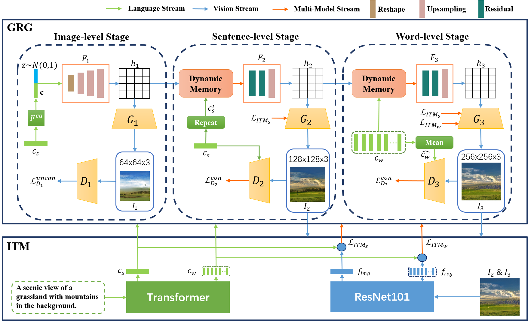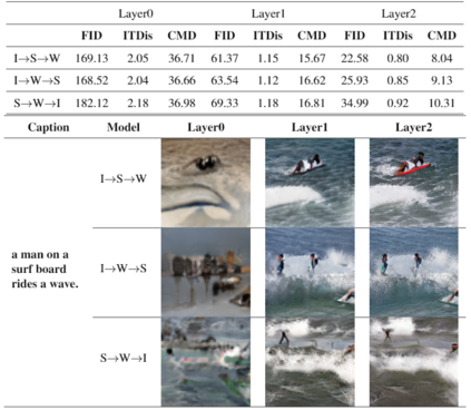 翻译:良好的文本到图像模型不仅应产生高质量的图像,而且还应确保文本与生成图像的一致性。 以前的模型未能同时同时修正两侧。 本文建议建立一个渐进式精化生成反图像网络( GR- GAN) 以有效缓解问题。 一个 GRG 模块旨在生成低分辨率到高分辨率的图像, 其相应的文本限制来自粗微颗粒( 恒定) 和微微颗粒( 字词) 阶段, 一个 ITM 模块旨在为相应阶段的句模级和字区级提供图像文本匹配损失。 我们还引入了一个新的衡量图像质量和图像文本一致性的跨模数距离( CMD ) 。 实验结果显示GR- GAN 显著地超越了以前的模型, 并实现了关于FID和 CMD的新的状态。 详细分析显示G- GAN 不同生成阶段的效率。