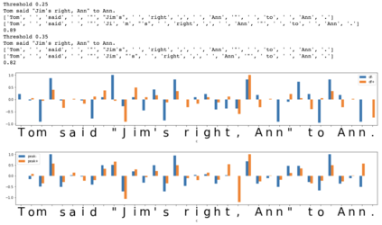 翻译:在提交的研究报告中,我们发现,与诸如相互信息和有条件概率等统计指标相比,所谓的“过渡自由”指标似乎在未经监督的象征性化方面优于诸如相互信息和有条件概率等统计指标,在所探索的多语种公司之间提供了从0.71到1.0不等的F度量分。 我们发现,不同的语言要求该指标的不同分支(如衍生物、差异和“峰值 ” ) 才能成功象征性化。 大型培训公司不一定能提高象征性化质量,而通过消除统计上薄弱的证据来压缩模型往往能提高性能。 拟议的未经监督的象征性化技术提供的质量优于或与基于词汇的技术相比,取决于语言。