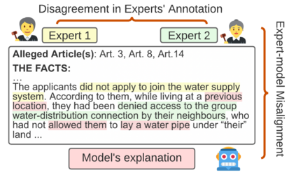 In legal NLP, Case Outcome Classification (COC) must not only be accurate but also trustworthy and explainable. Existing work in explainable COC has been limited to annotations by a single expert. However, it is well-known that lawyers may disagree in their assessment of case facts. We hence collect a novel dataset RAVE: Rationale Variation in ECHR1, which is obtained from two experts in the domain of international human rights law, for whom we observe weak agreement. We study their disagreements and build a two-level task-independent taxonomy, supplemented with COC-specific subcategories. To our knowledge, this is the first work in the legal NLP that focuses on human label variation. We quantitatively assess different taxonomy categories and find that disagreements mainly stem from underspecification of the legal context, which poses challenges given the typically limited granularity and noise in COC metadata. We further assess the explainablility of SOTA COC models on RAVE and observe limited agreement between models and experts. Overall, our case study reveals hitherto underappreciated complexities in creating benchmark datasets in legal NLP that revolve around identifying aspects of a case's facts supposedly relevant to its outcome.