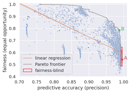 翻译:已经引导了相当的研究工作,以实现算法公平,但现实世界仍然很少采用减少偏见的技术。现有的方法要么是衡量或模型特定的方法,要求在推论时间获得敏感属性,要么是高的开发和部署成本。这项工作在现实世界欺诈检测应用中探索了传统ML模型开发过程中出现的不公平,以及如何通过简单和容易采用的干预来减轻这种不公平:公平了解超分法优化。我们提议和评价三种受欢迎的HO算法的公平认识变式:公平随机搜索、公平TEP和公平带。我们的方法使从业人员能够以没有摩擦和可控制的公平准确交易的方式调整现有的商业业务,以适应公平目标。此外,还可以结合现有的减少偏差技术来调整其超分数。我们验证了我们在真实世界银行账户开设欺诈案件以及公平文献的三个数据集上的做法。结果显示,在没有额外培训成本的情况下,可以找到平均公平性提高111%的模型,在预测准确度方面降低6 % 。相比之下,在预测准确性时,可以找到平均公平性提高101%的模型,在预测性方面降低6 % 。