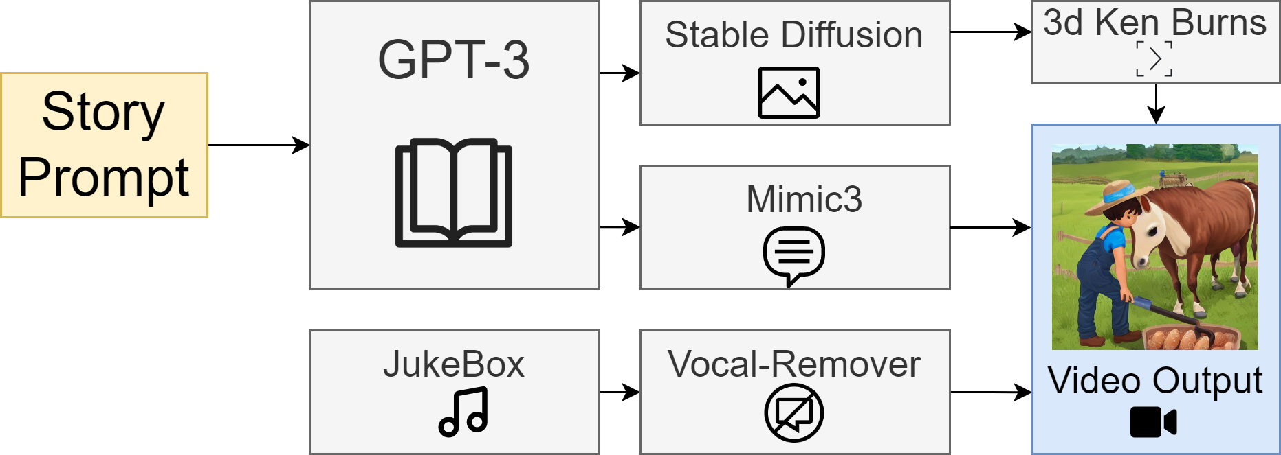 Artistic work leveraging Machine Learning techniques is an increasingly popular endeavour for those with a creative lean. However, most work is done in a single domain: text, images, music, etc. In this work, I design a system for a machine learning created multimedia experience, specifically in the genre of children's literature. We detail the process for exclusively using publicly available pretrained deep neural network based models, I present multiple examples of the work my system creates, and I explore the problems associated in this area of creative work.