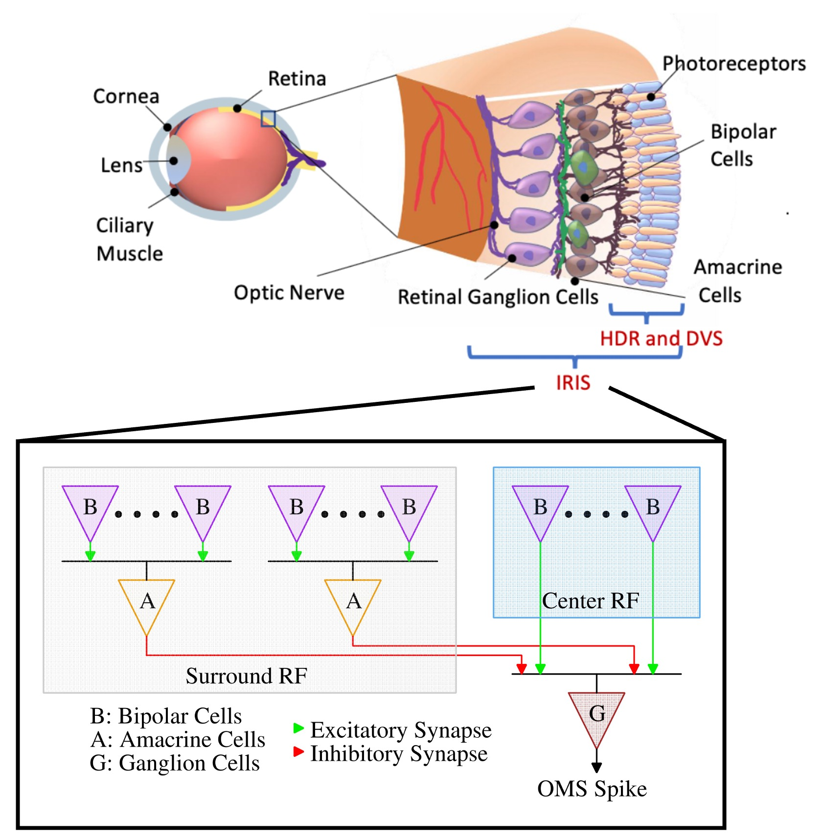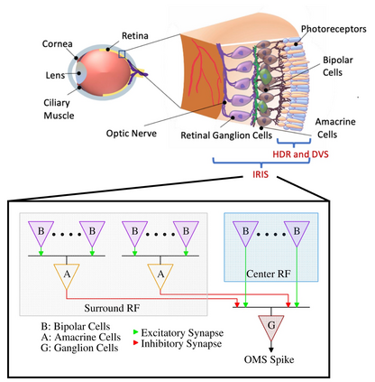 翻译:Abstract: 神经形态学(事件)图像传感器从人类视网膜中汲取灵感,创造了一种可以以与其生物对应物相似的方式处理视觉刺激的电子设备。这些传感器处理的信息与传统的RGB传感器相比显著不同。具体而言,事件型图像传感器生成的感官信息比RGB传感器稀疏几个数量级。第一代神经形态学图像传感器——动态视觉传感器(DVS)——受到限于光感受器和视网膜神经元之间第一个突触的计算的启发。在本文中,我们强调了第二代神经形态学图像传感器——集成视网膜功能CMOS图像传感器(IRIS)的能力,它旨在模仿从光感受器到视网膜输出(视网膜神经元)的全面视网膜计算,以进行有针对性的特征提取。本研究选择的特征是目标运动敏感度(OMS),该特征在IRIS传感器中局部处理。我们研究了OMS在解决事件型摄像机自运动问题方面的能力。我们的结果表明,OMS可以像传统的RGB和DVS方案一样有效地完成标准计算机视觉任务,但可大大减少带宽。这减小了无线和计算功率预算,并在高速、强韧、节能和低带宽实时决策方面开辟了广阔的机会。