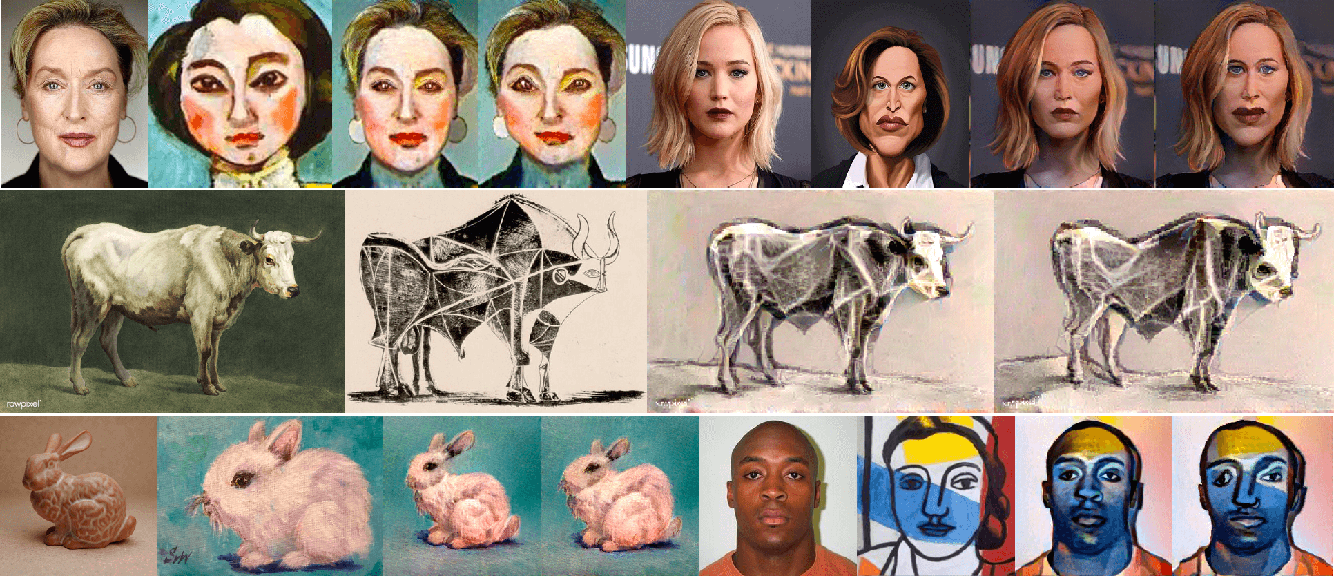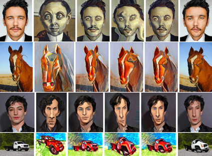 翻译:几何和形状是视觉风格的基本方面。 现有的样式转换方法侧重于风格的质地相似的元素, 忽略几何。 我们建议采用变形样式转换( DST), 这是一种以优化为基础的方法, 将质地和几何样式转换结合起来。 我们的方法是首先允许不局限于任何领域也不需要匹配样式/ 内容配对的培训组合。 我们用多种内容和样式图像展示我们的方法, 包括肖像、 动物、 对象、 场景和绘画。