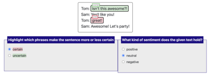 翻译:我们提出POTATO,即POTATO,即POTATO的可移动文本注释工具,是一个自由、完全开放的源码注释系统,1)支持标签许多类型的文本和多式数据;2)提供易于配置的特征,以最大限度地提高部署者和通知员的生产率(通用ML/NLP任务、积极学习、按键快捷键、关键词提示、工具提示的召集模板);3)支持高度定制化(编辑UI、插入预先筛选问题、关注和资格测试)。 两项说明性任务实验表明,POTATO通过特别设计的生产率特征改进标签速度,特别是长文件和复杂任务。 POTATO可在https://github.com/davidjurgens/potato上查阅,并将继续更新。