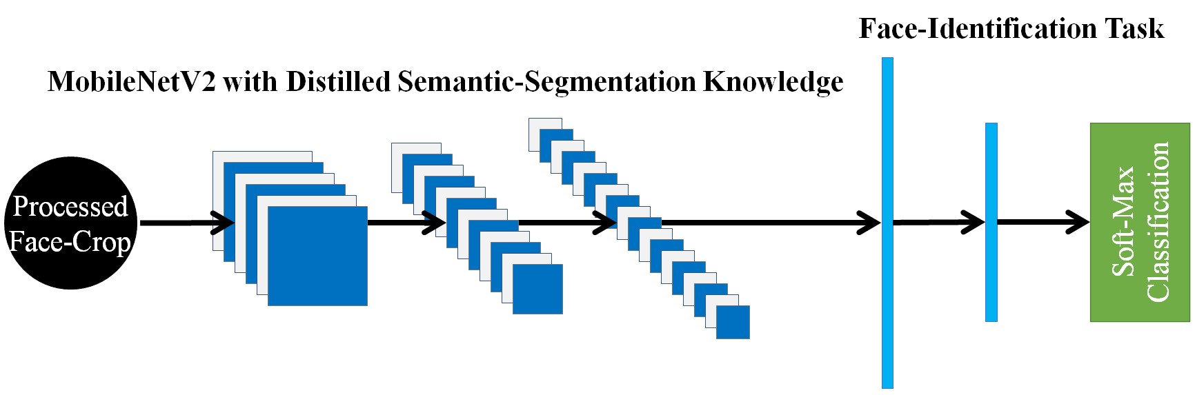 翻译:本文展示了一种利用语义分隔特征改进表面识别面貌差异的新办法。 拟议的Seg- 蒸馏- ID 网络联合学习识别和语义分隔任务, 分解任务随后“ 蒸馏 ” (mobileNet 编码器) 。 业绩以公开可得的数据集上的三个最先进的编码器为基准,强调头项差别。 实验评估显示,Seg- 蒸馏- ID 网络显示出显著的稳健性效益,在ResNet- 101上实现了99.9%的测试- 准确性,在ResNet- 101上实现了81.6%,在VGG-19上实现了96.1%的测试- 准确性,在受感官V3中实现了96.3%的测试- 。 这是使用大约十分之一的顶层编码推断参数实现的。 这些结果表明, 蒸馏语义分解特性能够有效地解决表面识别的容变差。